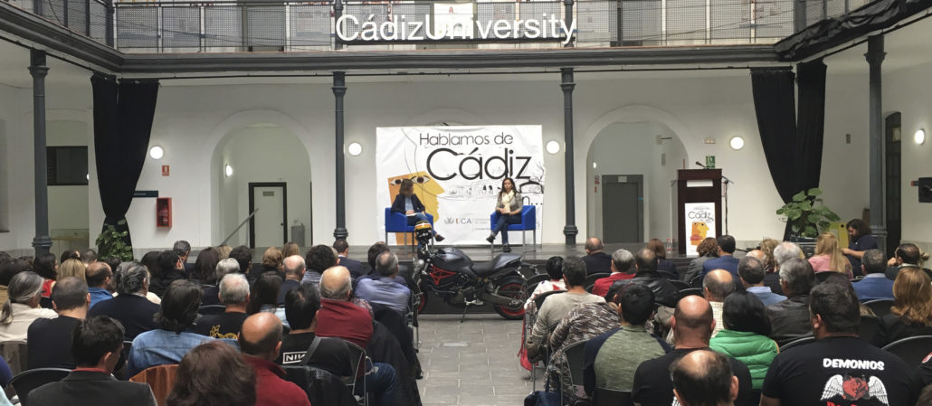 Una agenda apretada que estuvo marcada por el encuentro previo que la motera mantuvo con organizaciones sociales de la provincia de Cádiz. Los participantes en la mesa trasladaron a Sornosa los ámbitos en los que actúan, así como los proyectos en los que están inmersos. Tras la reunión se produjo el encuentro abierto al público en el edificio Constitución 1812 de la Universidad de Cádiz.